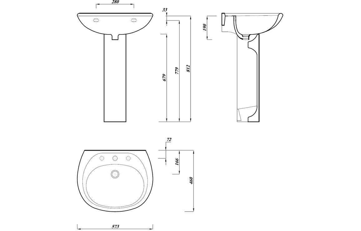 AquaLuxe 573x460mm 2TH Basin & Full Pedestal