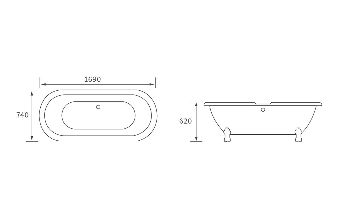 SilkenSoak Freestanding 1690x740x620mm 2TH Bath w/Feet - White